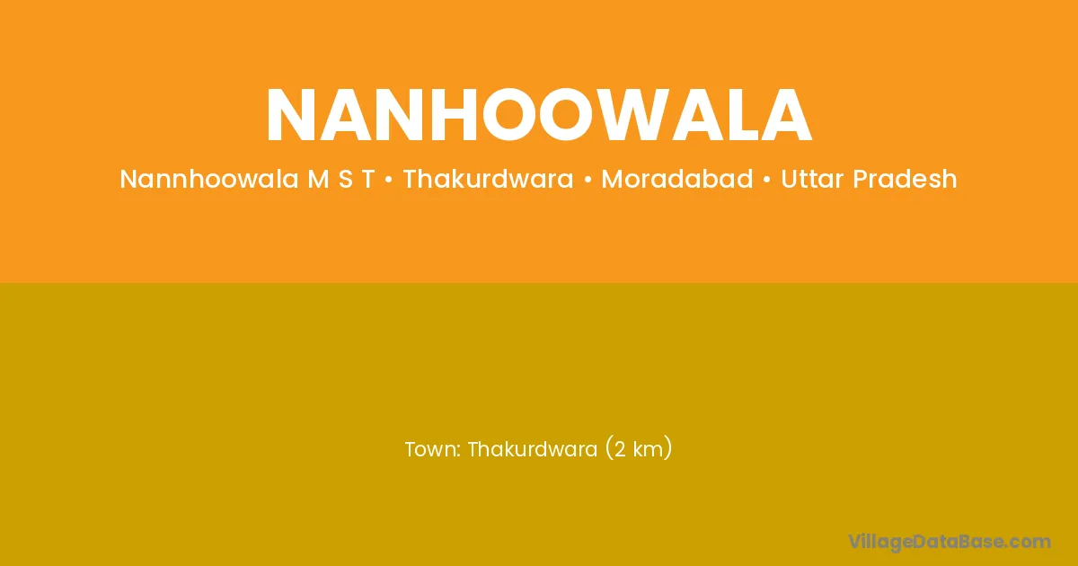 Thakurdwara (2 km) is the nearest town to Nanhoowala village for major economic activities and is located approximately 2 km away.