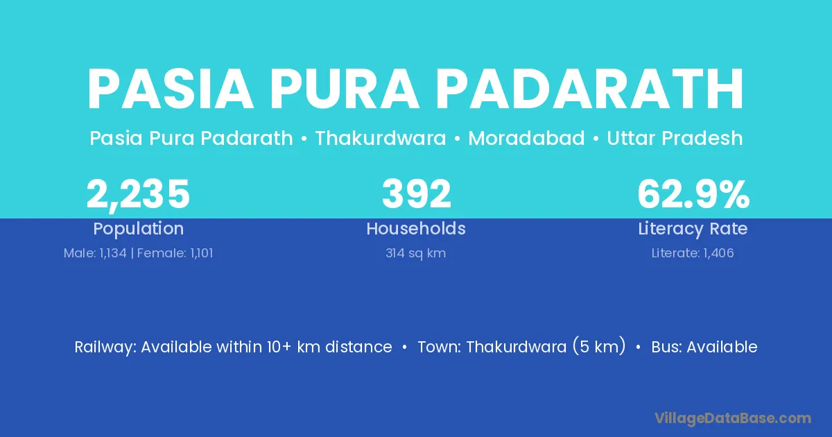 Thakurdwara (5 km) is the nearest town to Pasia Pura Padarath village for major economic activities and is located approximately 5 km away.