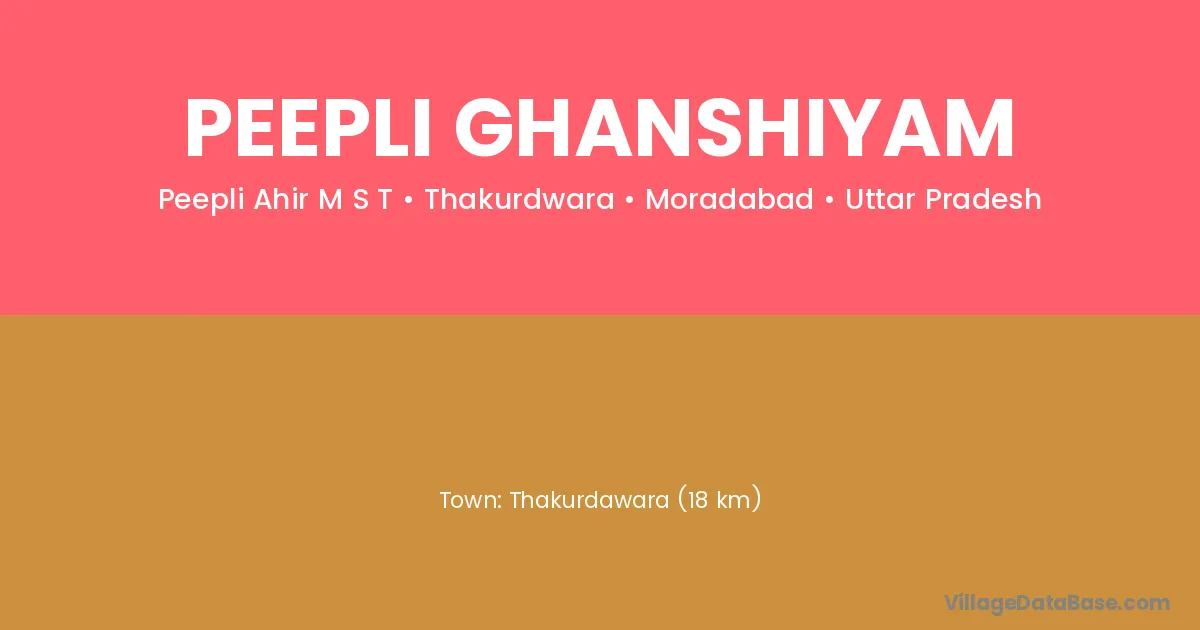 Thakurdawara (18 km) is the nearest town to Peepli Ghanshiyam village for major economic activities and is located approximately 18 km away.