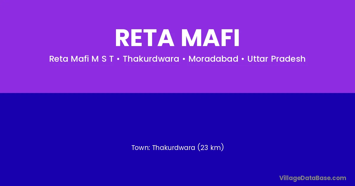 Thakurdwara (23 km) is the nearest town to Reta Mafi village for major economic activities and is located approximately 23 km away.