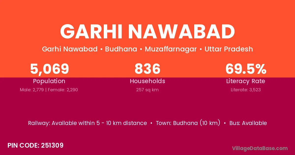 Budhana (10 km) is the nearest town to Garhi Nawabad village for major economic activities and is located approximately 10 km away.