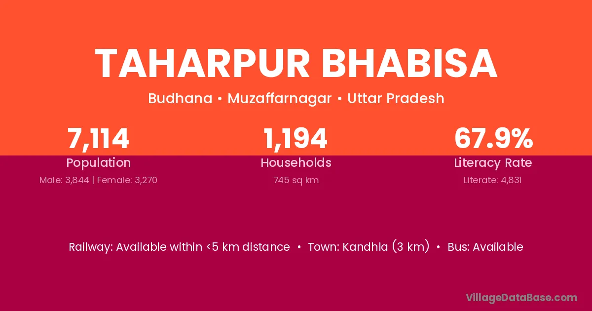 Kandhla (3 km) is the nearest town to Taharpur Bhabisa village for major economic activities and is located approximately 3 km away.
