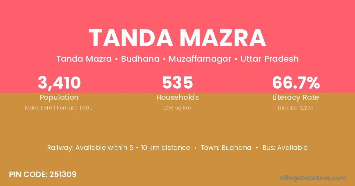 Budhana is the nearest town to Tanda Mazra village for major economic activities
