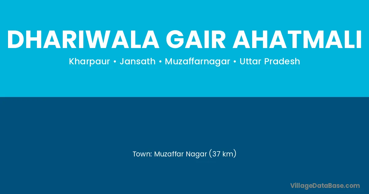 Muzaffar Nagar (37 km) is the nearest town to Dhariwala Gair Ahatmali village for major economic activities and is located approximately 37 km away.