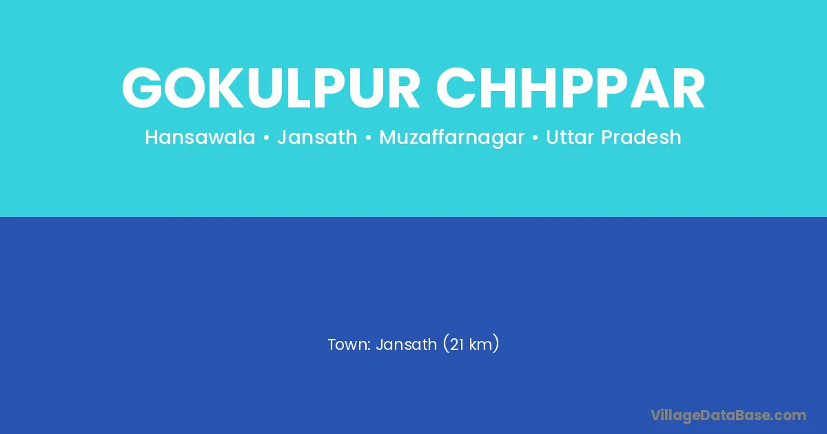 Jansath (21 km) is the nearest town to Gokulpur Chhppar village for major economic activities and is located approximately 21 km away.