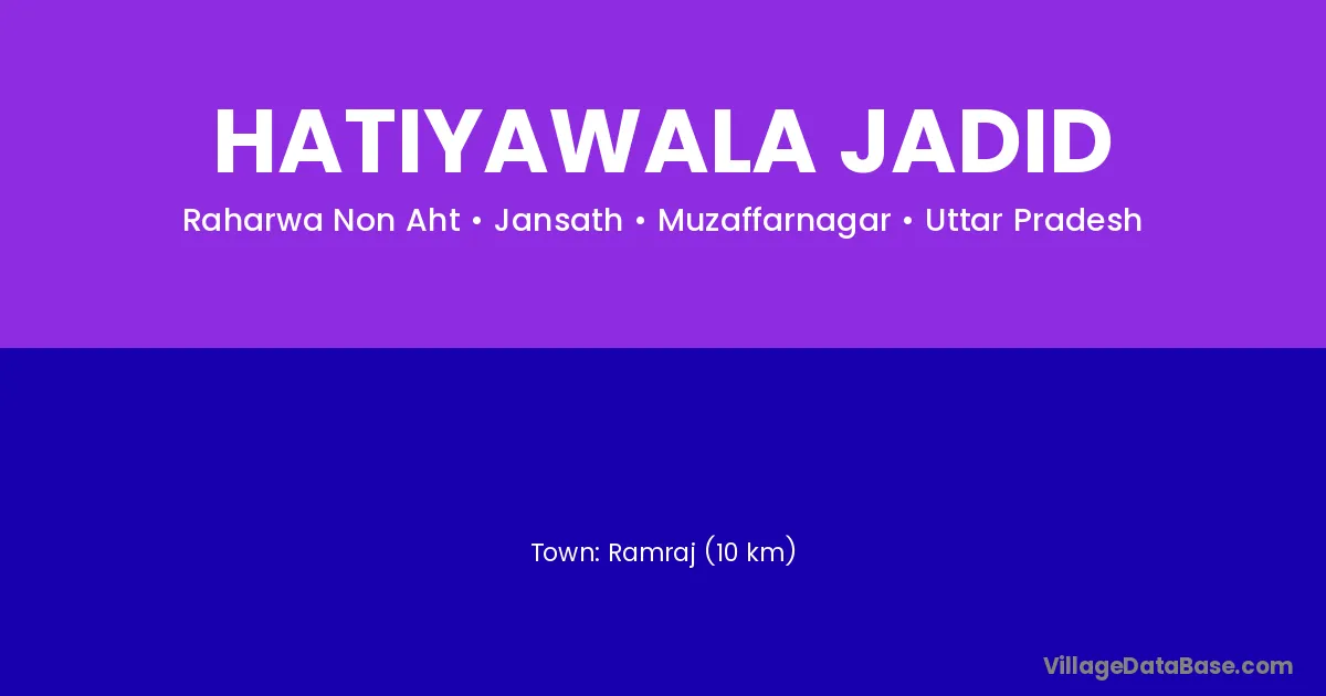 Ramraj (10 km) is the nearest town to Hatiyawala Jadid village for major economic activities and is located approximately 10 km away.