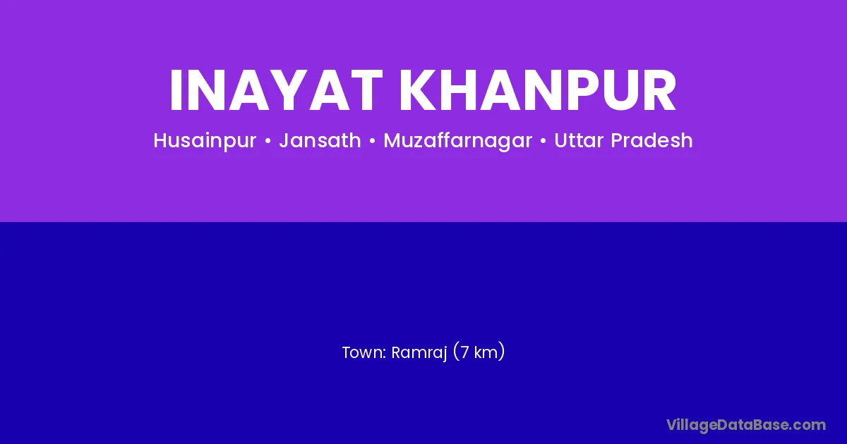 Ramraj (7 km) is the nearest town to Inayat Khanpur village for major economic activities and is located approximately 7 km away.