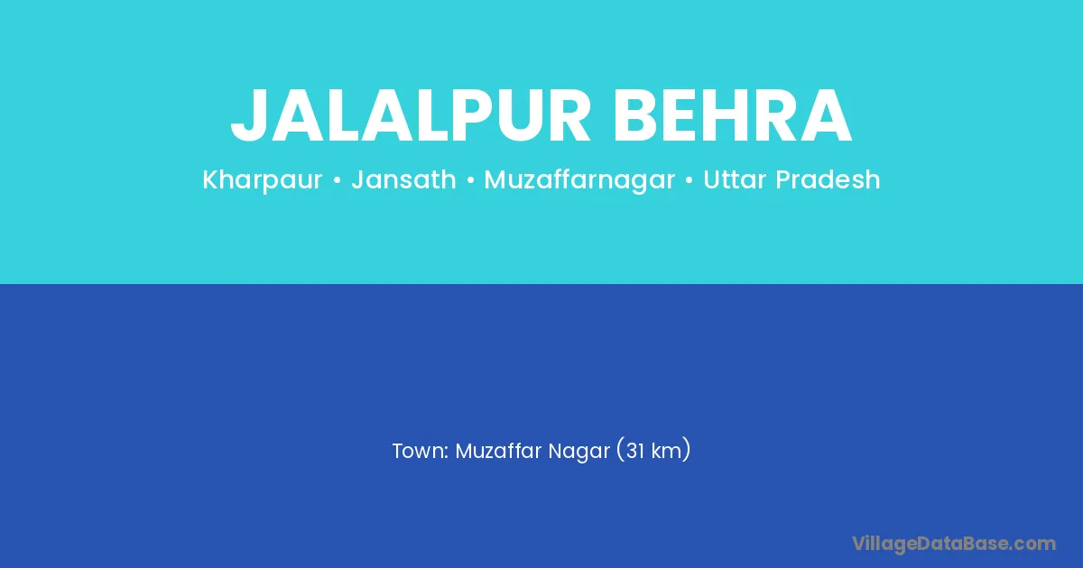 Muzaffar Nagar (31 km) is the nearest town to Jalalpur Behra village for major economic activities and is located approximately 31 km away.