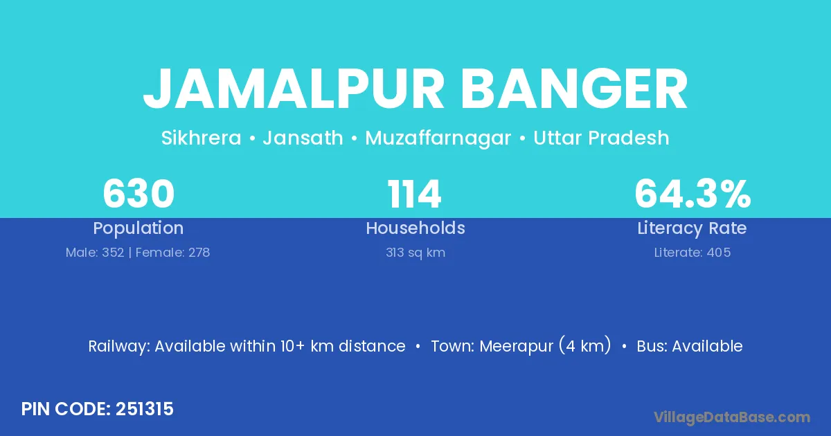Meerapur (4 km) is the nearest town to Jamalpur Banger village for major economic activities and is located approximately 4 km away.