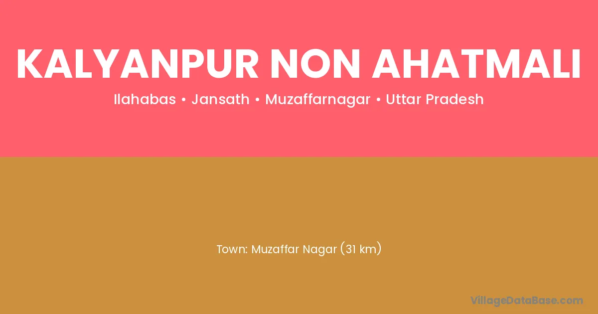 Muzaffar Nagar (31 km) is the nearest town to Kalyanpur Non Ahatmali village for major economic activities and is located approximately 31 km away.