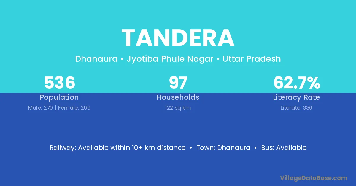 Tandera village has a total population of 7,402 people, of which 3,879 are males and 3,523 are females.