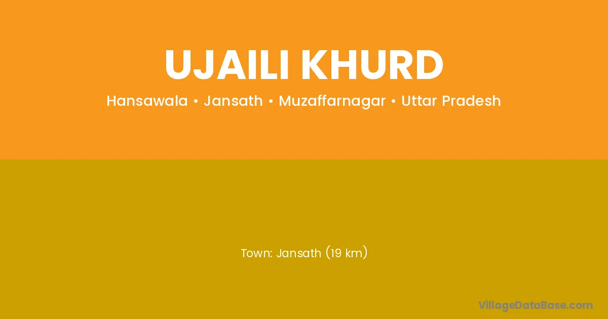 Jansath (19 km) is the nearest town to Ujaili Khurd village for major economic activities and is located approximately 19 km away.