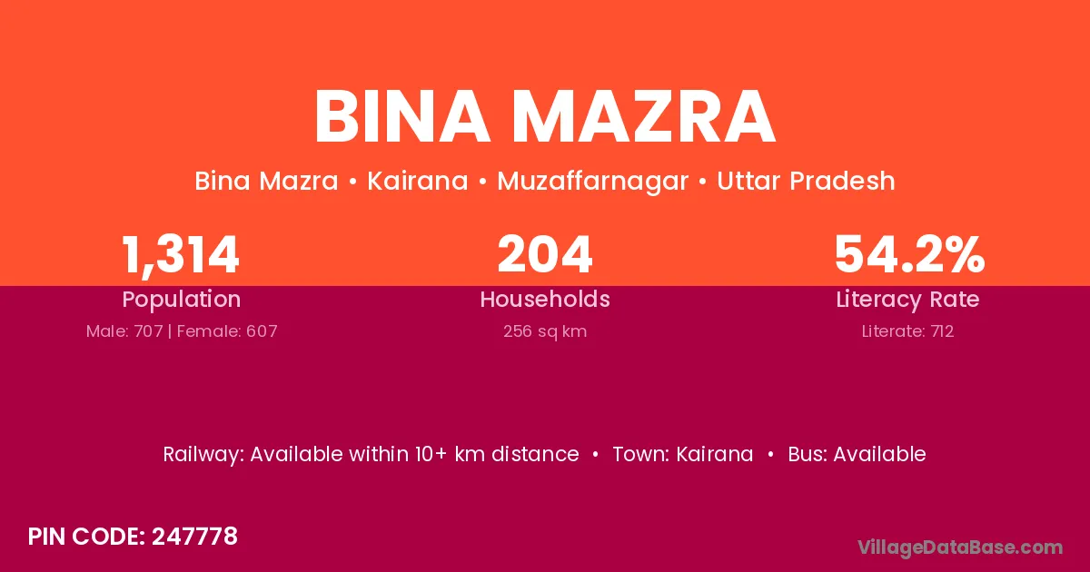 Kairana is the nearest town to Bina Mazra village for major economic activities