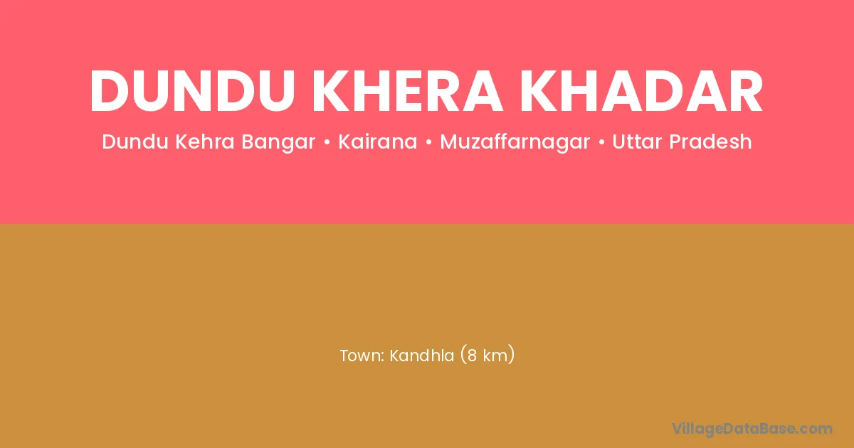 Kandhla (8 km) is the nearest town to Dundu Khera Khadar village for major economic activities and is located approximately 8 km away.