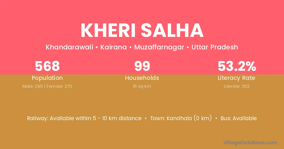 Kheri Salha village has a total population of 568 people, of which 295 are males and 273 are females.