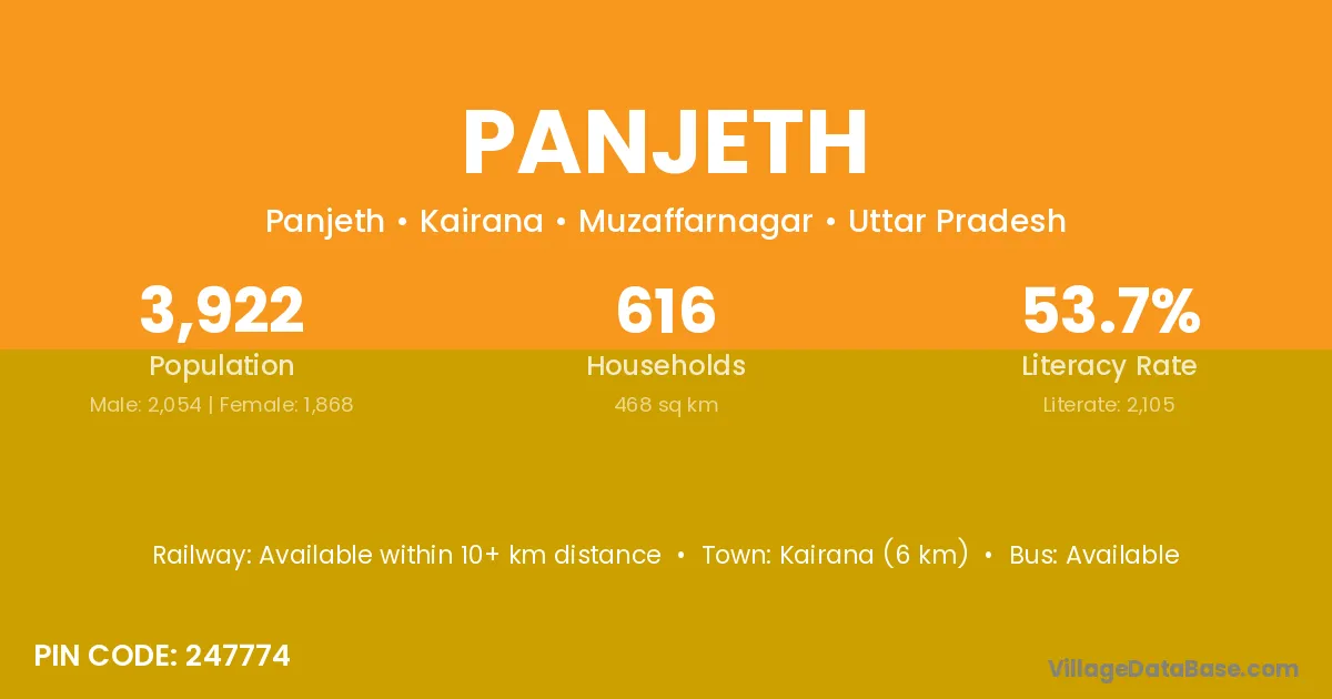 Kairana (6 km) is the nearest town to Panjeth village for major economic activities and is located approximately 6 km away.