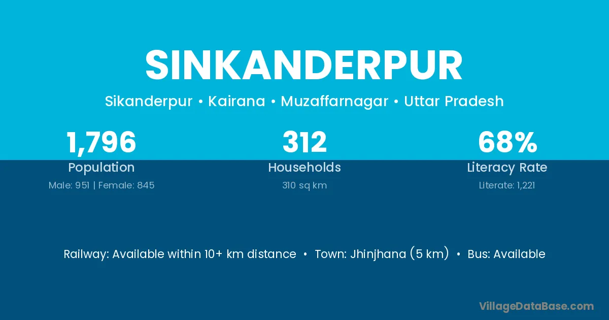 Jhinjhana (5 km) is the nearest town to Sinkanderpur village for major economic activities and is located approximately 5 km away.