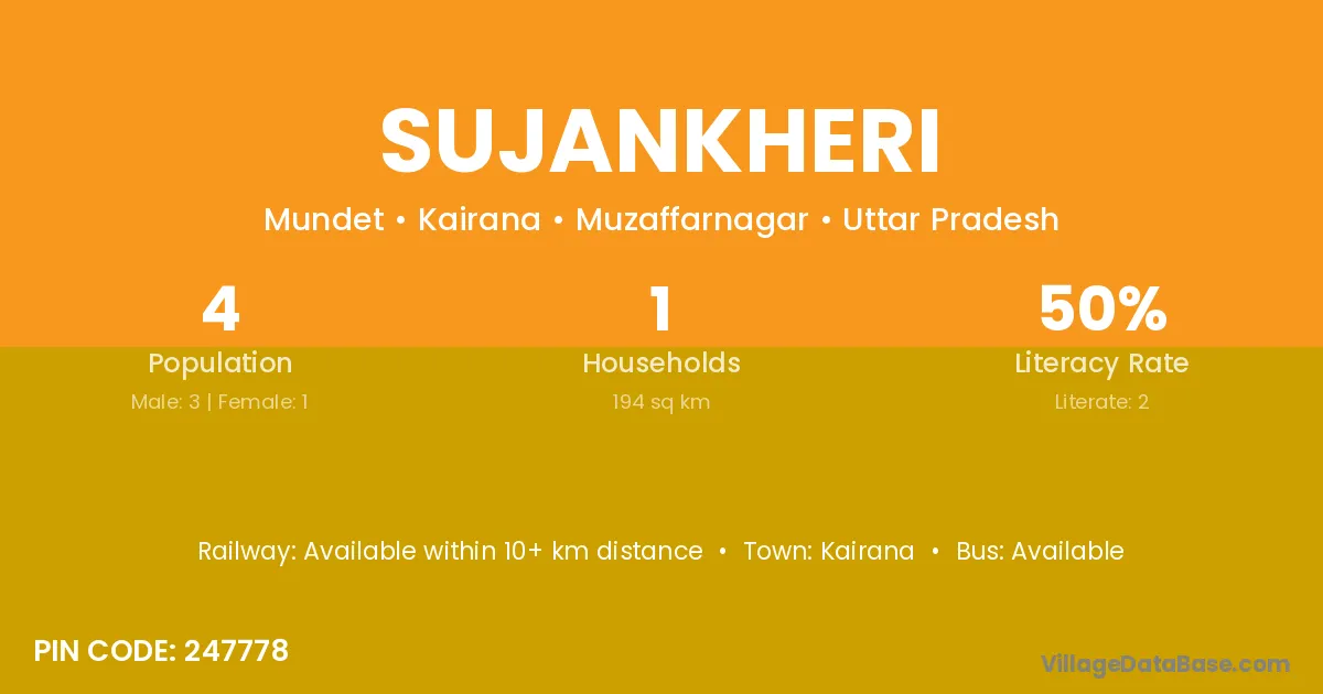 Kairana is the nearest town to Sujankheri village for major economic activities