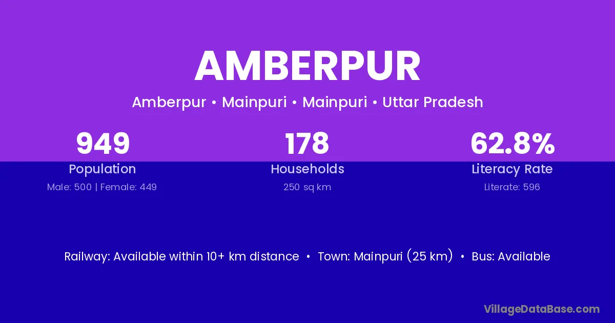 Khatauli (8 km) is the nearest town to Amberpur village for major economic activities and is located approximately 8 km away.