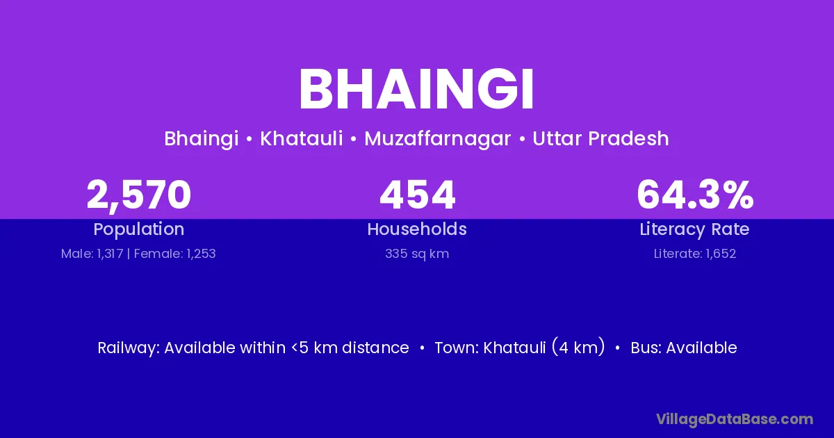 Khatauli (4 km) is the nearest town to Bhaingi village for major economic activities and is located approximately 4 km away.