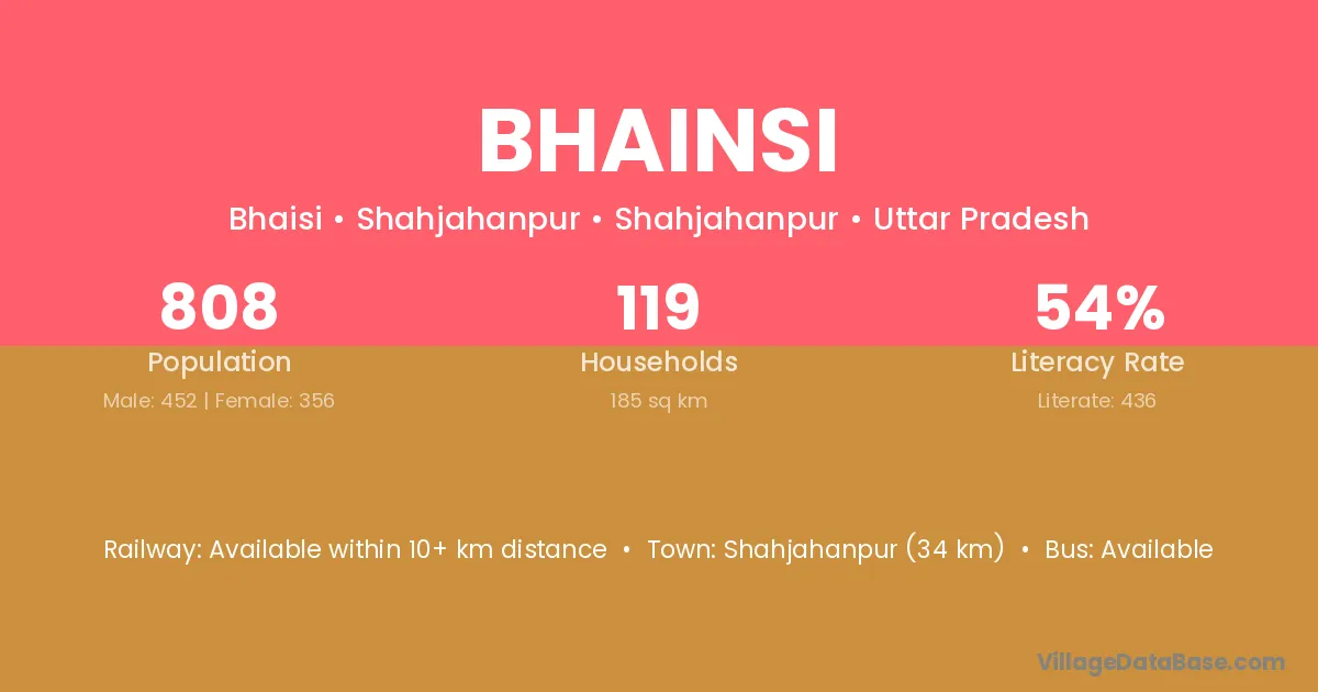 Khatauli (3 km) is the nearest town to Bhainsi village for major economic activities and is located approximately 3 km away.