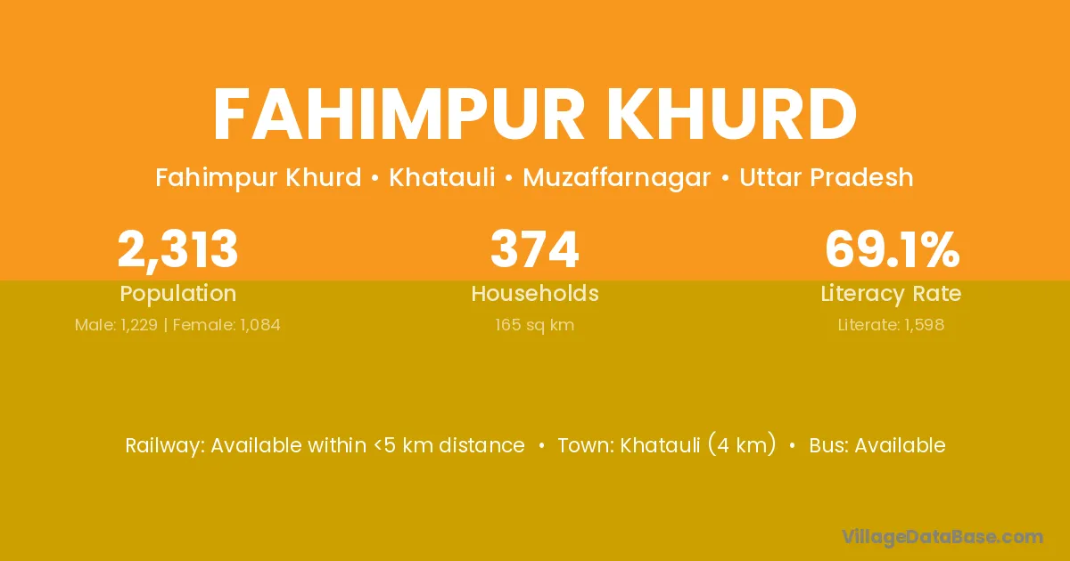 Khatauli (4 km) is the nearest town to Fahimpur Khurd village for major economic activities and is located approximately 4 km away.