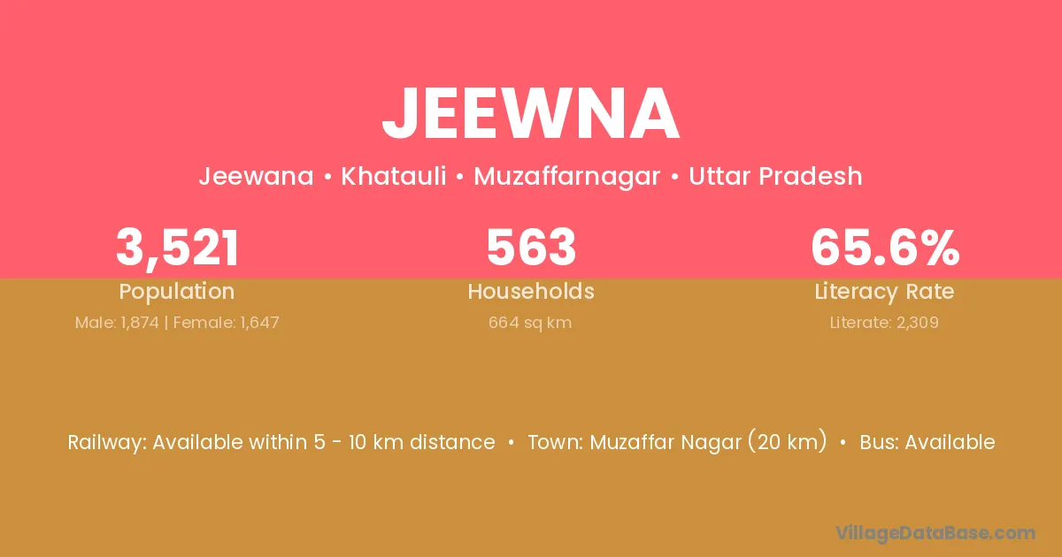 Muzaffar Nagar (20 km) is the nearest town to Jeewna village for major economic activities and is located approximately 20 km away.
