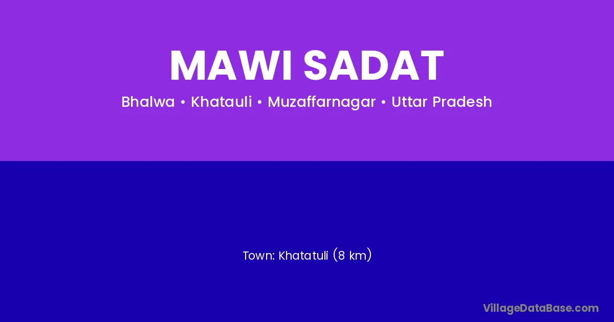 Khatatuli (8 km) is the nearest town to Mawi Sadat village for major economic activities and is located approximately 8 km away.