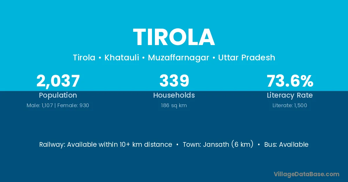 Jansath (6 km) is the nearest town to Tirola village for major economic activities and is located approximately 6 km away.