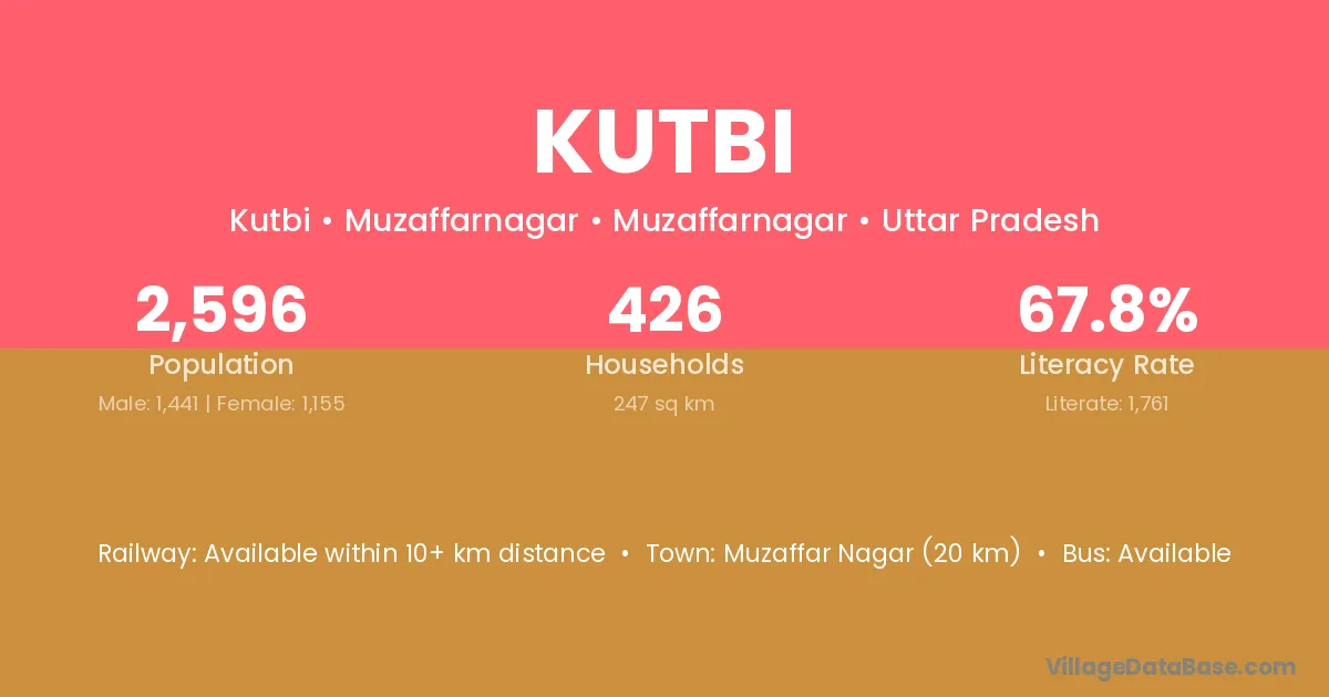 Muzaffar Nagar (20 km) is the nearest town to Kutbi village for major economic activities and is located approximately 20 km away.