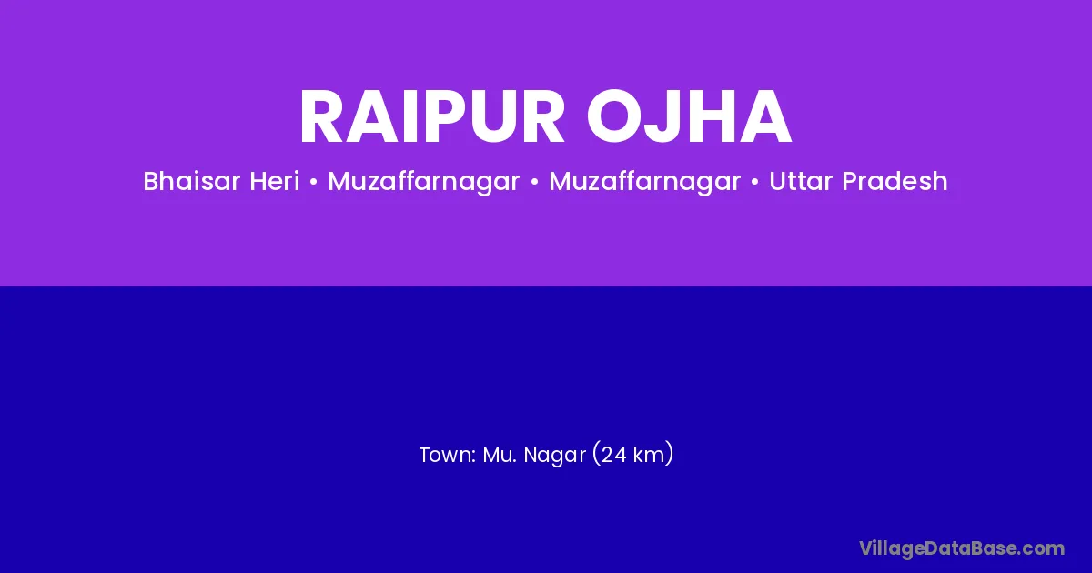 Mu. Nagar (24 km) is the nearest town to Raipur Ojha village for major economic activities and is located approximately 24 km away.