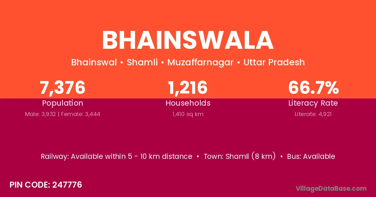 Shamli (8 km) is the nearest town to Bhainswala village for major economic activities and is located approximately 8 km away.
