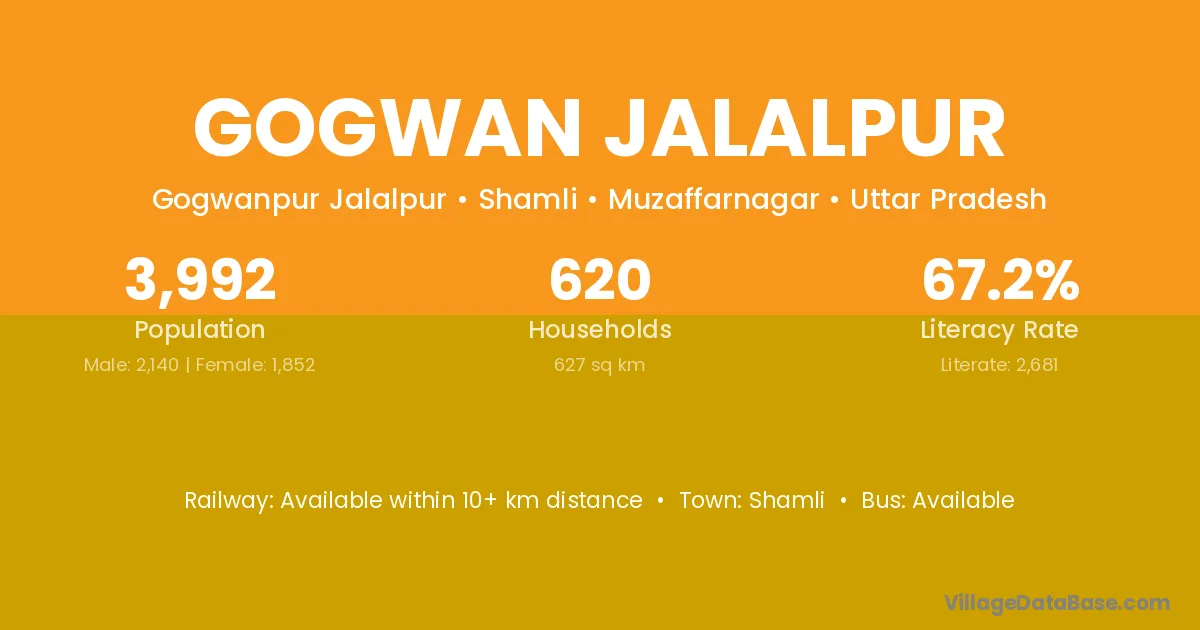 Shamli is the nearest town to Gogwan Jalalpur village for major economic activities