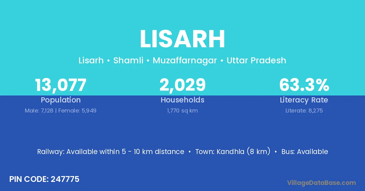 Kandhla (8 km) is the nearest town to Lisarh village for major economic activities and is located approximately 8 km away.