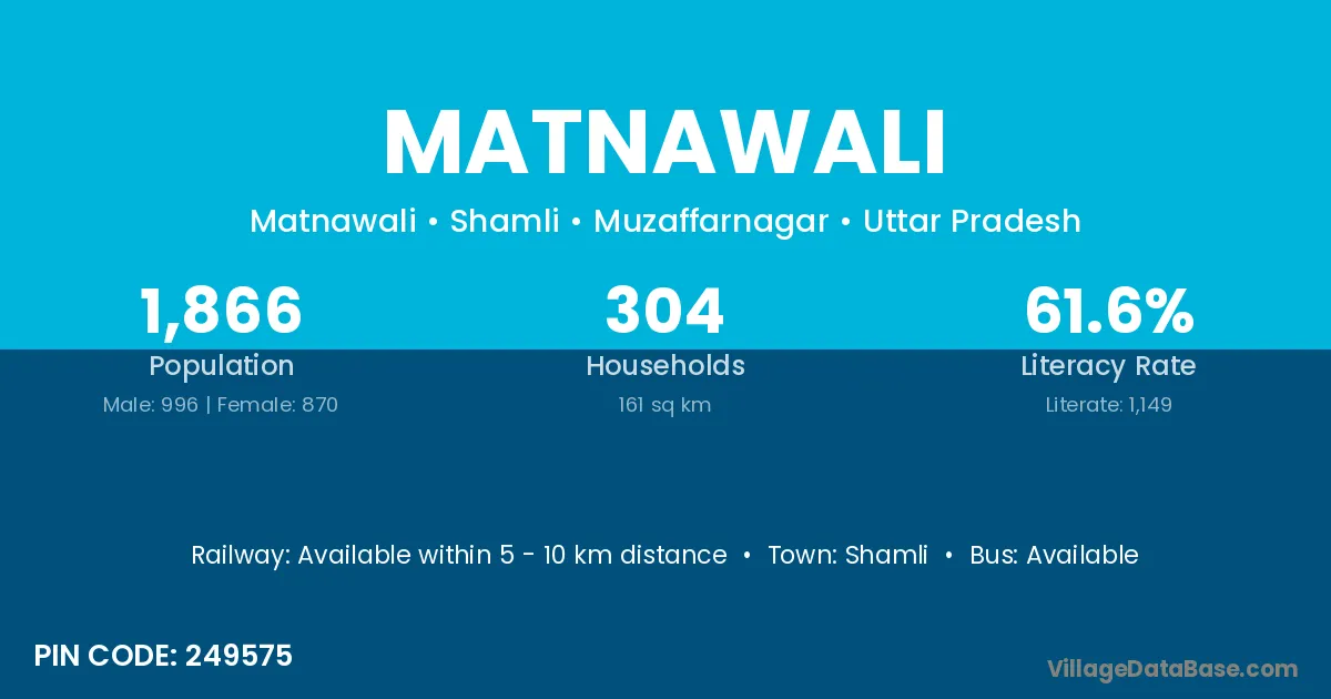 Shamli is the nearest town to Matnawali village for major economic activities