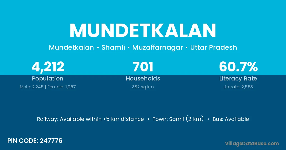 According to Census 2011 information, the village code of Mundetkalan village is 247776.