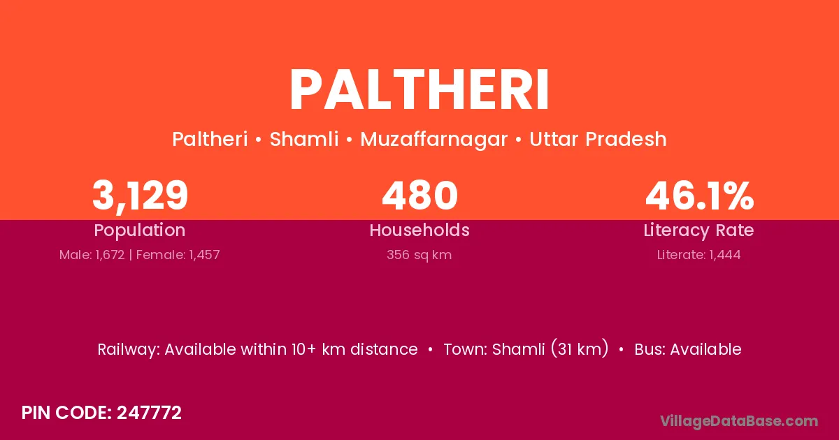 Shamli (31 km) is the nearest town to Paltheri village for major economic activities and is located approximately 31 km away.