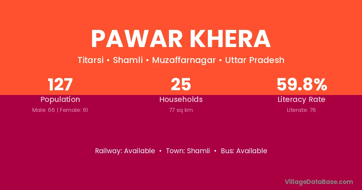 Pawar Khera village has a total population of 127 people, of which 66 are males and 61 are females.