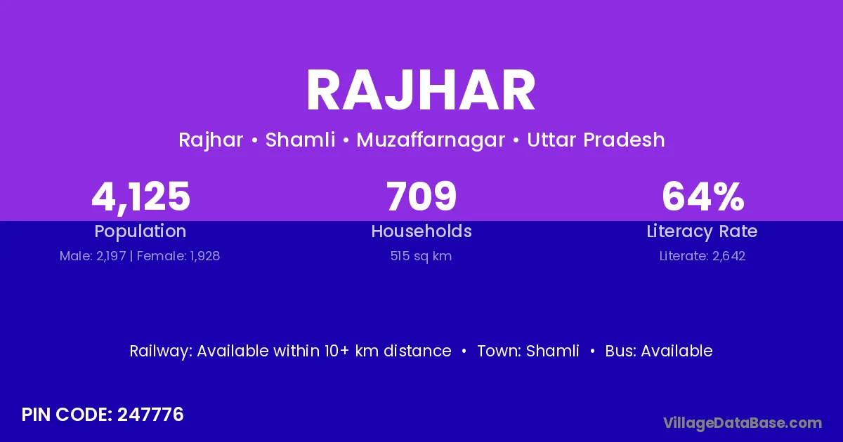 Shamli is the nearest town to Rajhar village for major economic activities