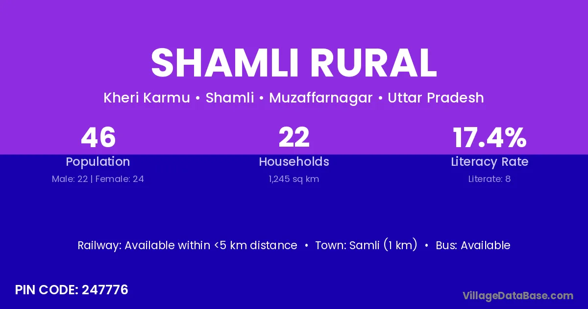 Shamli Rural village has a total population of 46 people, of which 22 are males and 24 are females.
