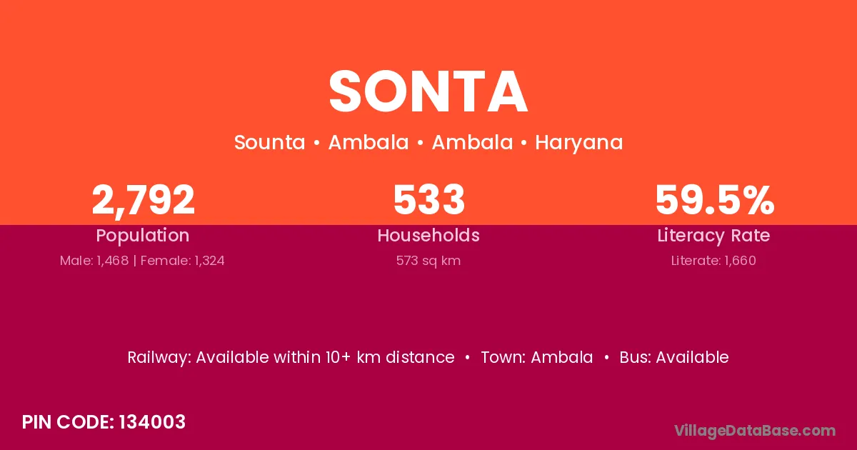 The literacy rate of Sonta village is 69.76%. Male literacy stands at 78.30% and female literacy at 60.27%.