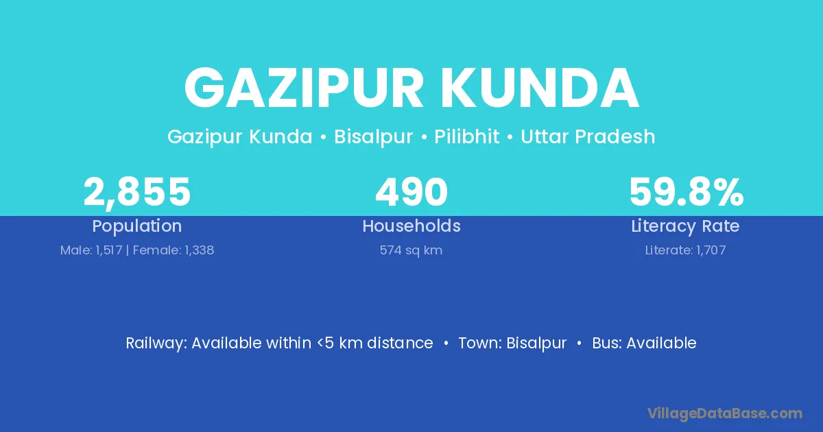 Gazipur Kunda village has a total population of 2,855 people, of which 1,517 are males and 1,338 are females.
