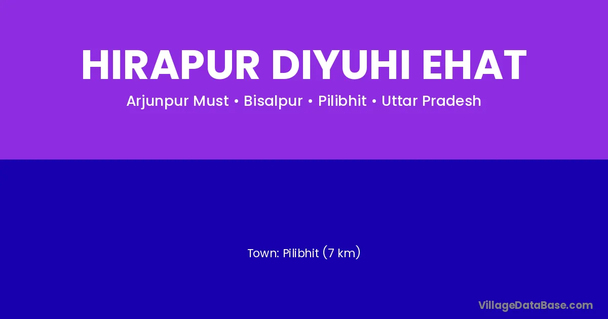 Pilibhit (7 km) is the nearest town to Hirapur Diyuhi Ehat village for major economic activities and is located approximately 7 km away.