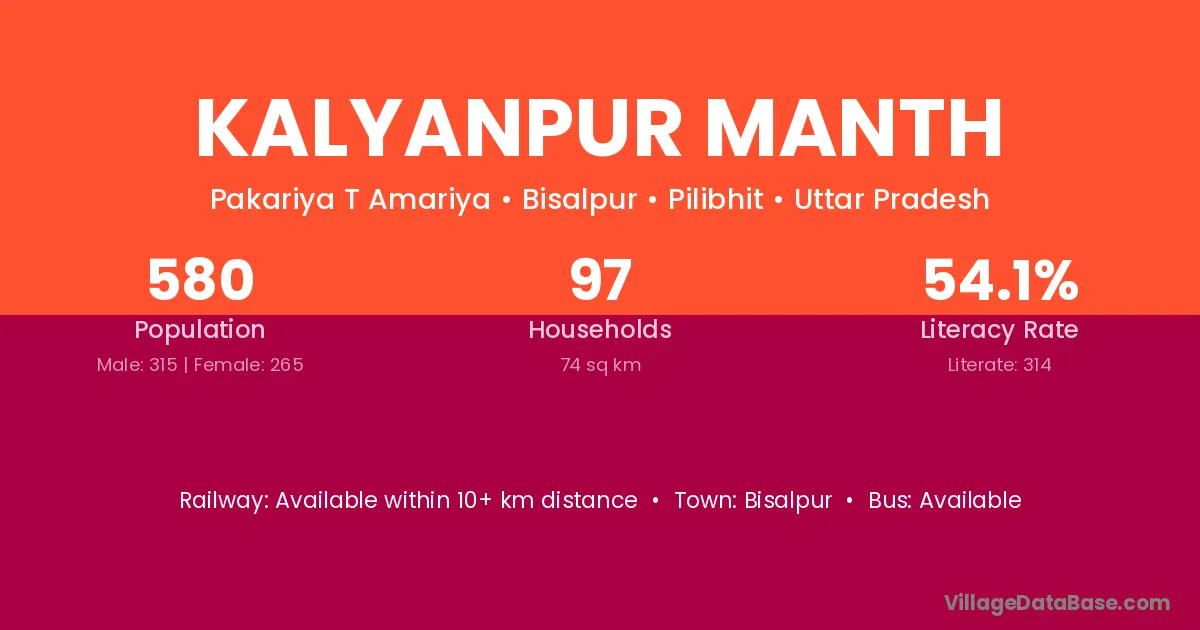 Kalyanpur Manth village has a total population of 580 people, of which 315 are males and 265 are females.