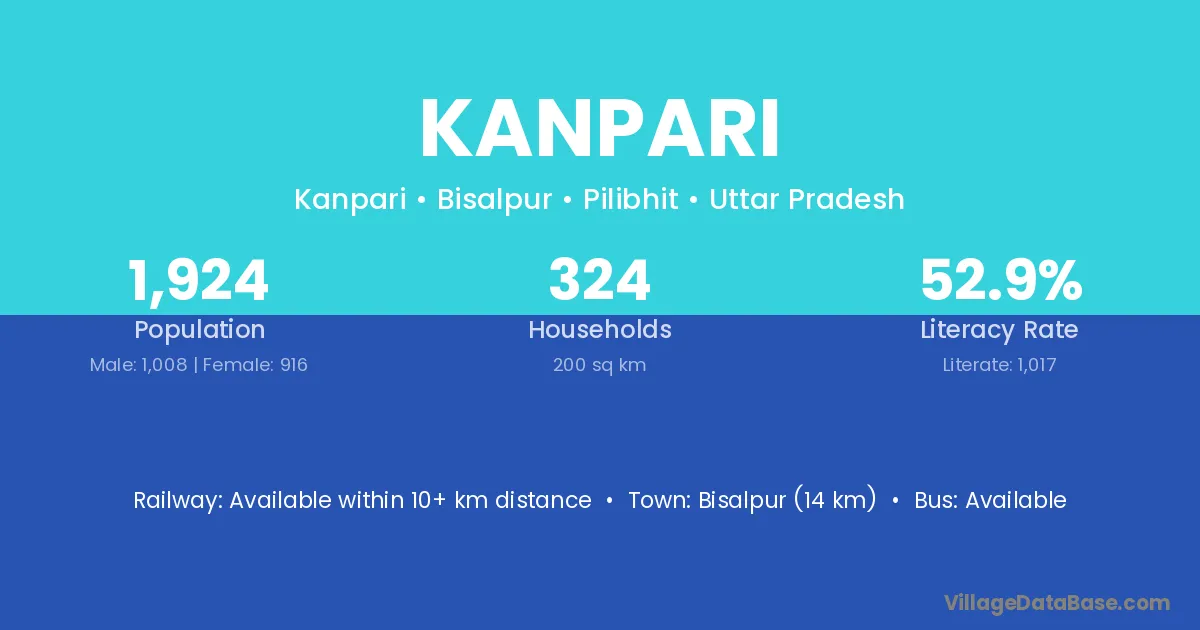 Kanpari village has a total population of 1,924 people, of which 1,008 are males and 916 are females.