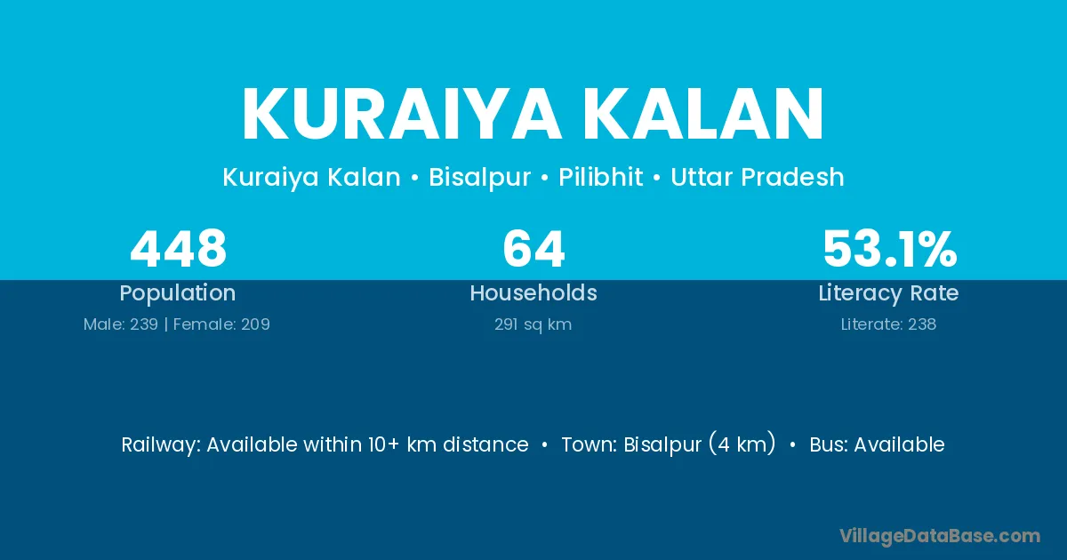 Bisalpur (4 km) is the nearest town to Kuraiya Kalan village for major economic activities and is located approximately 4 km away.