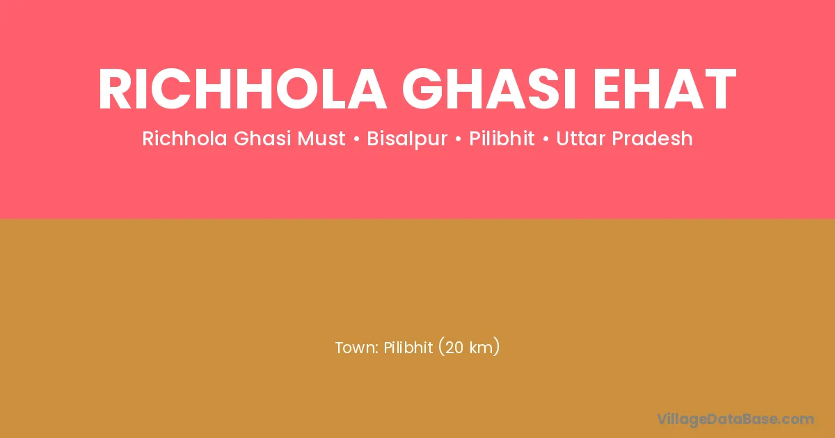 Pilibhit (20 km) is the nearest town to Richhola Ghasi Ehat village for major economic activities and is located approximately 20 km away.
