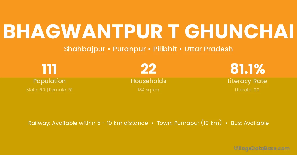 Bhagwantpur T Ghunchai village has a total population of 111 people, of which 60 are males and 51 are females.