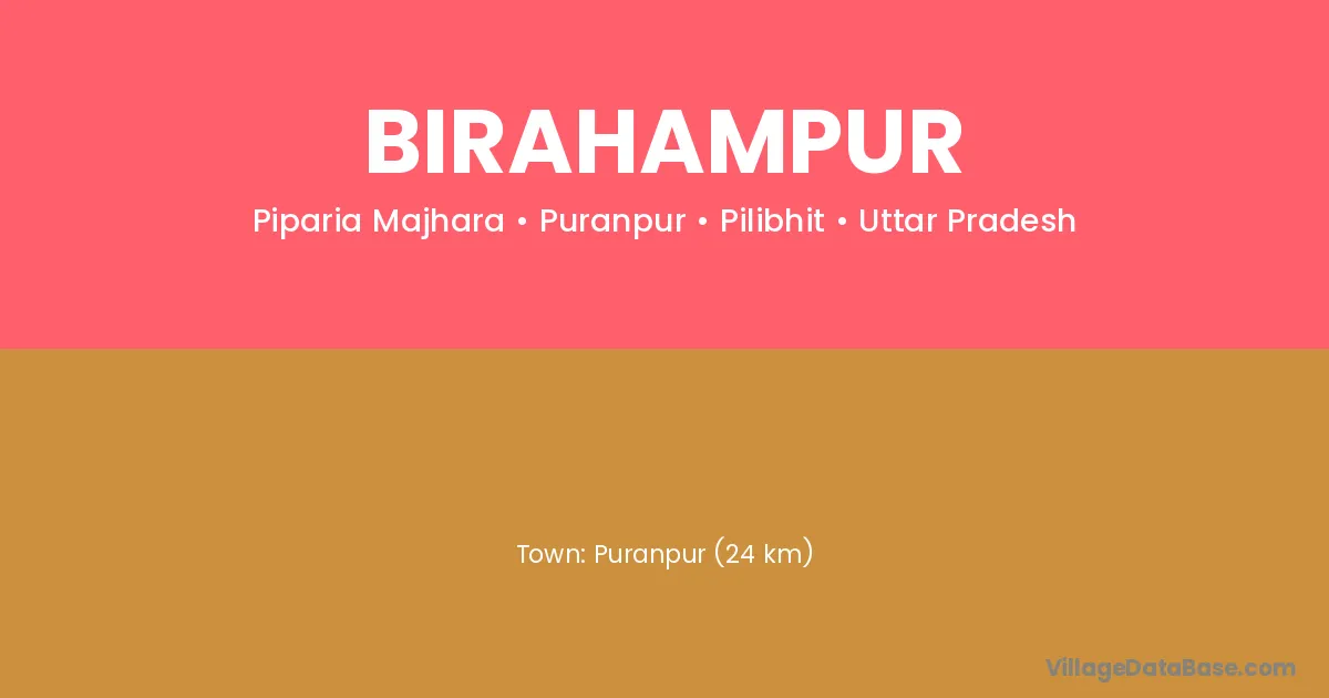 Puranpur (24 km) is the nearest town to Birahampur village for major economic activities and is located approximately 24 km away.