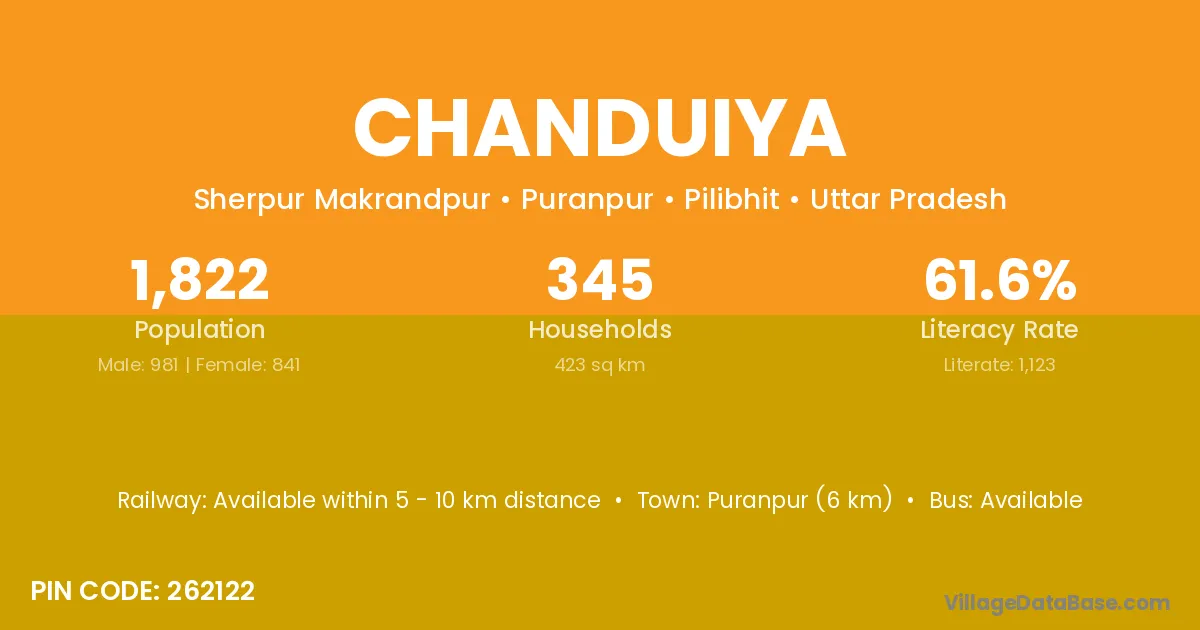 Puranpur (6 km) is the nearest town to Chanduiya village for major economic activities and is located approximately 6 km away.